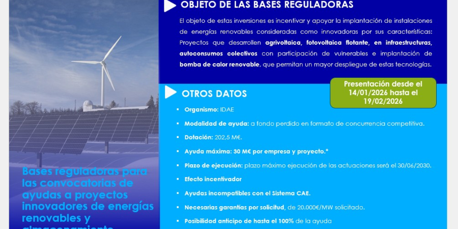 2da Convo Proyectos Innovadores de energías renovables, almacenamiento y bombas de calor